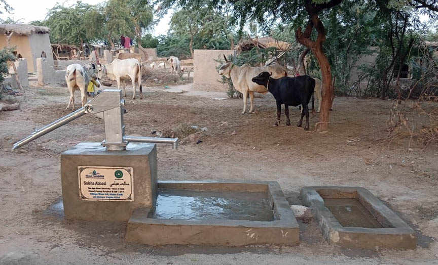 A handpump improves access to water and benefits a community of 100 people with a continuous supply of water in District Tharparkar. Livestock pond will provide water to livestock.
